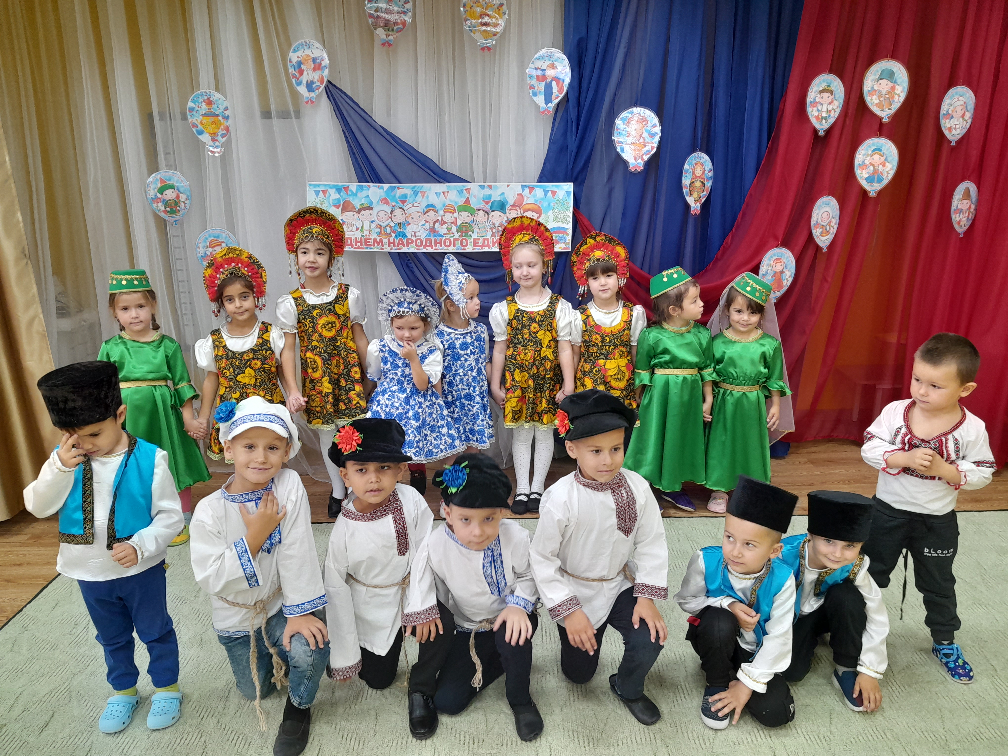 В преддверии Дня народного единства в Детском саду прошли тематические мероприятия, объединённые одной темой – "День народного единства". В ходе мероприятий дети в доступной форме познакомились с историей возникновения праздника, подвигами наших предков во имя независимости Родины.